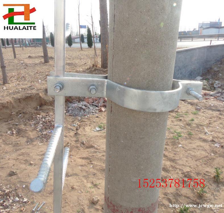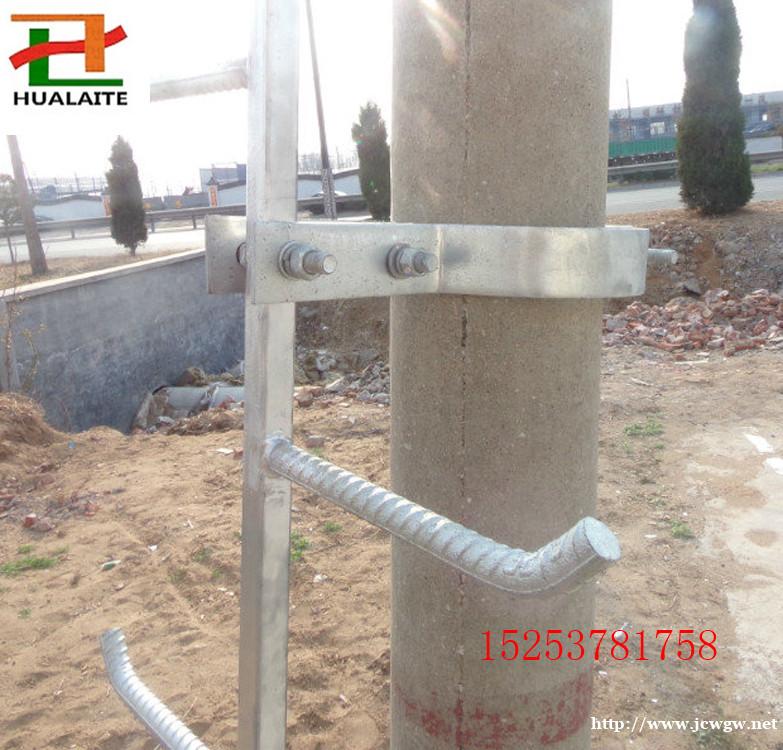 本和热镀锌抱箍组成,通常每套爬梯至少配两套热镀锌抱箍,抱箍尺寸以需要使用爬梯