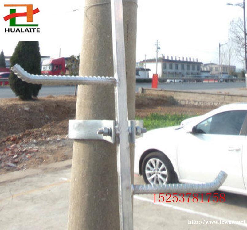产品配置:电杆爬梯主要用在电杆、灯杆、管桩、烟囱等需要外部攀爬的场景。电杆爬梯由爬梯主体和热镀锌抱箍组成,通常每套爬梯至少配两套热镀锌抱箍,抱箍尺寸以需要使用爬梯的电杆直径为准配置,电杆爬梯的长度可订做、可拼接延长,考虑物流运输能力,通常制作尺寸为3米~4米范围,如需使用加长型,生产时可设计插槽,方便拼接使用,为增加牢固性与安全性,可逐量增加抱箍的数量,已达到产品稳定性。